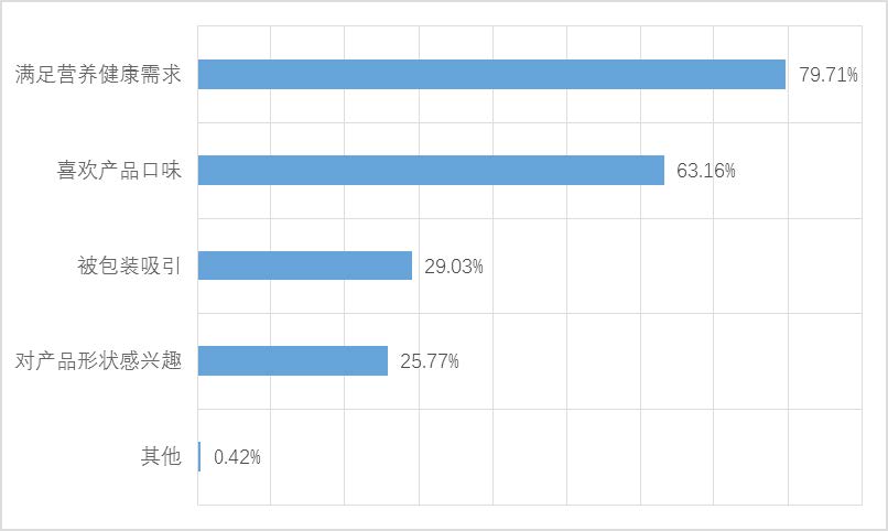 隨著國民對健康的關(guān)注度提升,針對特定人 群的食品很受歡迎,比如兒童、老人、孕婦等。七 成以上消費(fèi)者認(rèn)為標(biāo)注適宜人群有利于自己合理 選購產(chǎn)品,其中滿足營養(yǎng)健康需求是最重要的考 量,其次是產(chǎn)品口味、包裝、外形的偏好。