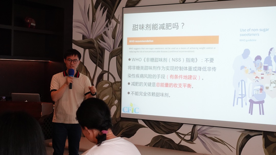 科信中心科技傳播部主任阮光鋒介紹了糖的作用、糖對健康的影響、目前糖的評估情況、關(guān)于糖的常見誤區(qū)、甜味劑的優(yōu)點、應(yīng)用情況及三減常見誤區(qū)等。