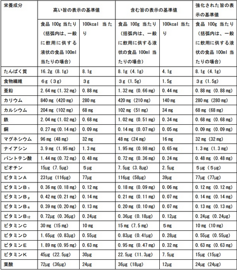 表2 營(yíng)養(yǎng)成分強(qiáng)調(diào)聲稱基準(zhǔn)值