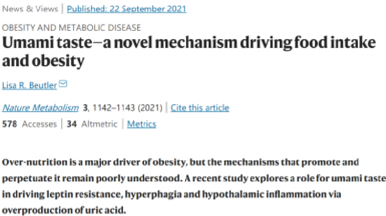 最近國際頂級學術期刊《自然》的子刊發表了一篇美國科羅拉多大學的研究,認為谷氨酸被代謝后會生成尿酸,長期攝入就可能導致肥胖和代謝綜合征blahblahblah...