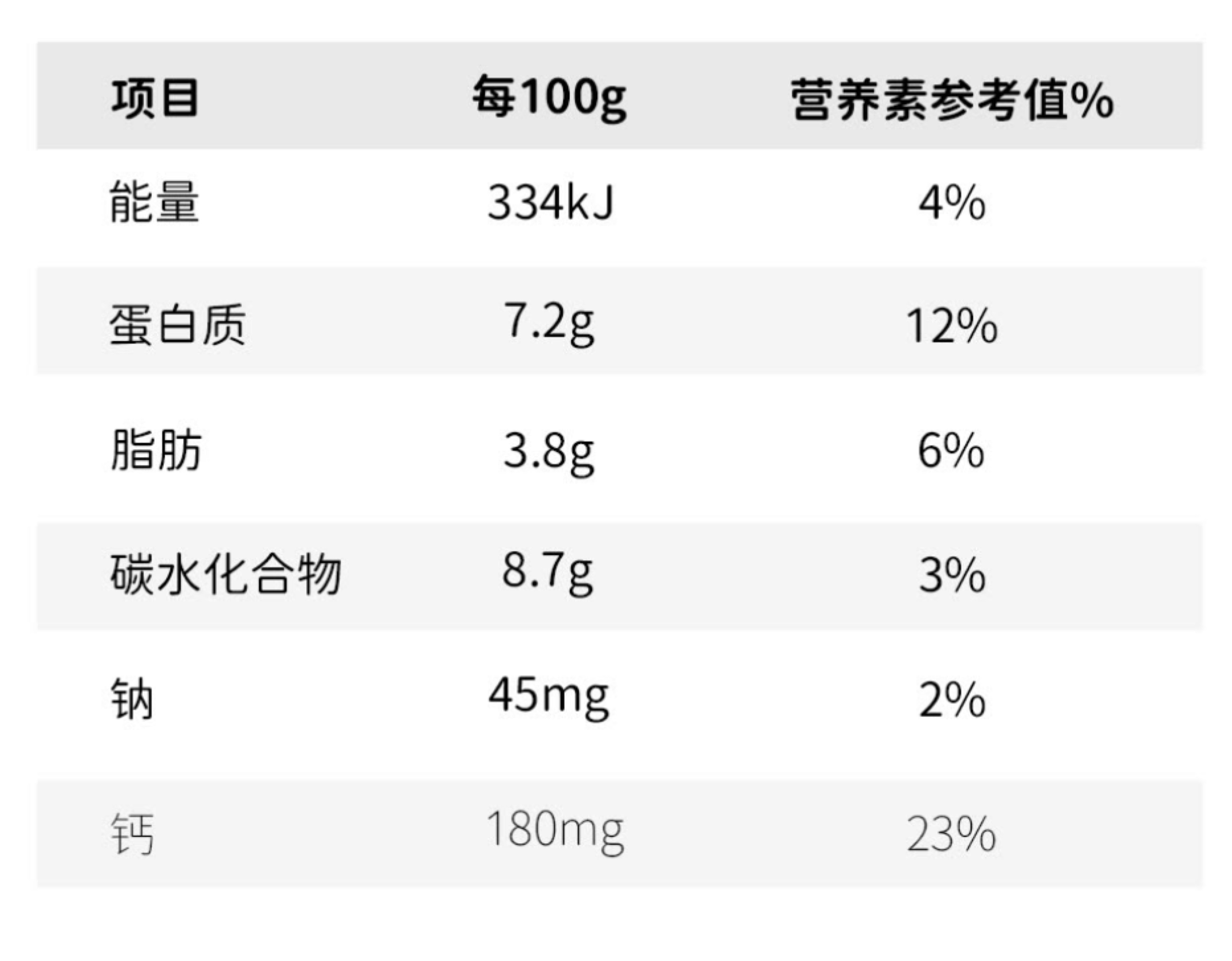 蛋白質(zhì)、脂肪和鈣——消費者一般比較看重這三種營養(yǎng)成分在酸奶中的含量,食品安全國家標準要求每100g風味發(fā)酵乳中蛋白質(zhì)含量最低要達到2.3g,脂肪含量最低為2.5g,在此基礎上含量更高的相對更好,所以,可通過營養(yǎng)成分表查看各個營養(yǎng)成分的含量,選擇合適的酸奶。