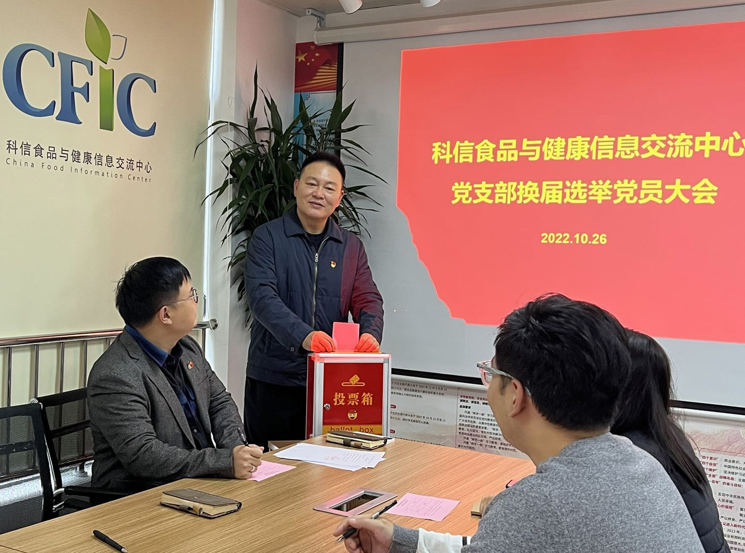 新當選的支部書記、科信中心理事長包大躍同志代表新一屆黨支部負責人作表態發言,并對下一步工作進行安排部署。他在發言中指出,此次換屆工作注重突出形式與內容、思想和業務的緊密結合,使支部的政治核心與戰斗堡壘作用進一步凸顯,支部利用換屆總結工作、梳理成績與不足、挖掘思想根源、明確發展和前進方向,讓整個換屆工作成為教育管理黨員的一堂生動思政實踐課,達到了很好的黨員教育管理效果。同時,他還提出希望全體黨員和新班子在新的起點上,發揚和繼承以往好經驗、好做法的同時,著眼新時代新征程新任務,與時俱進,務實創新,充分發揮戰斗堡壘作用和黨員的模范帶頭作用,團結帶領全體黨員堅定信仰守初心,嚴守紀律講規矩,立足主責主業,注重黨建和業務的深度融合,積極探索黨支部標準化、規范化建設,發揮黨建引領作用,協助政府相關部門在疫情防控、健康中國建設、食品安全社會共治、鄉村振興戰略等方面主動作為,不斷提升黨支部的組織力、戰斗力和凝聚力。