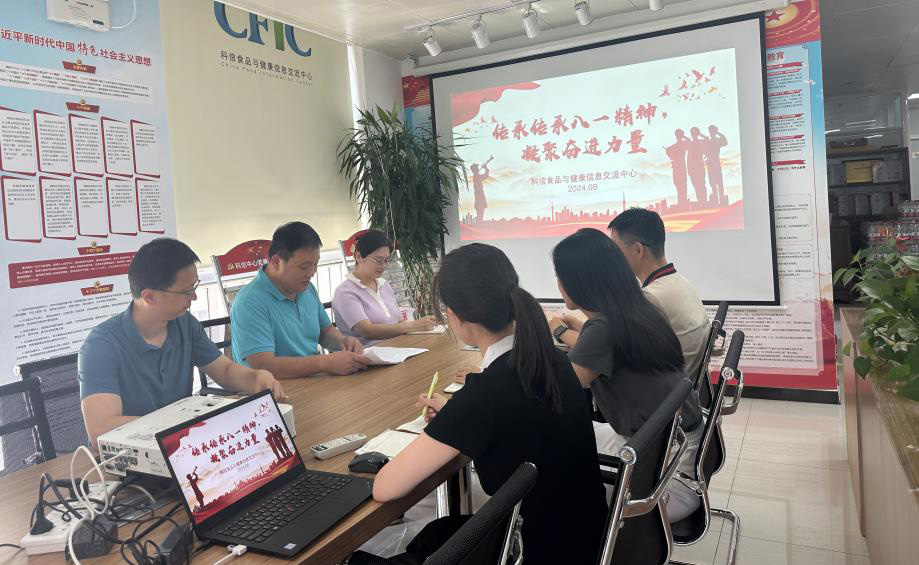 為進(jìn)一步傳承發(fā)揚(yáng)八一精神,頌揚(yáng)中國(guó)人民解放軍保家衛(wèi)國(guó)的奮斗精神,引導(dǎo)黨支部成員厚植家國(guó)情懷,增強(qiáng)擔(dān)當(dāng)意識(shí),提高黨支部凝聚力和號(hào)召力,2024 年 8 月 2 日,科信食品與健康信息交流中心黨支部開(kāi)展了“傳承八一精神,凝聚奮進(jìn)力量”主題黨日活動(dòng)。會(huì)議由科信中心黨支部包大躍書(shū)記主持。