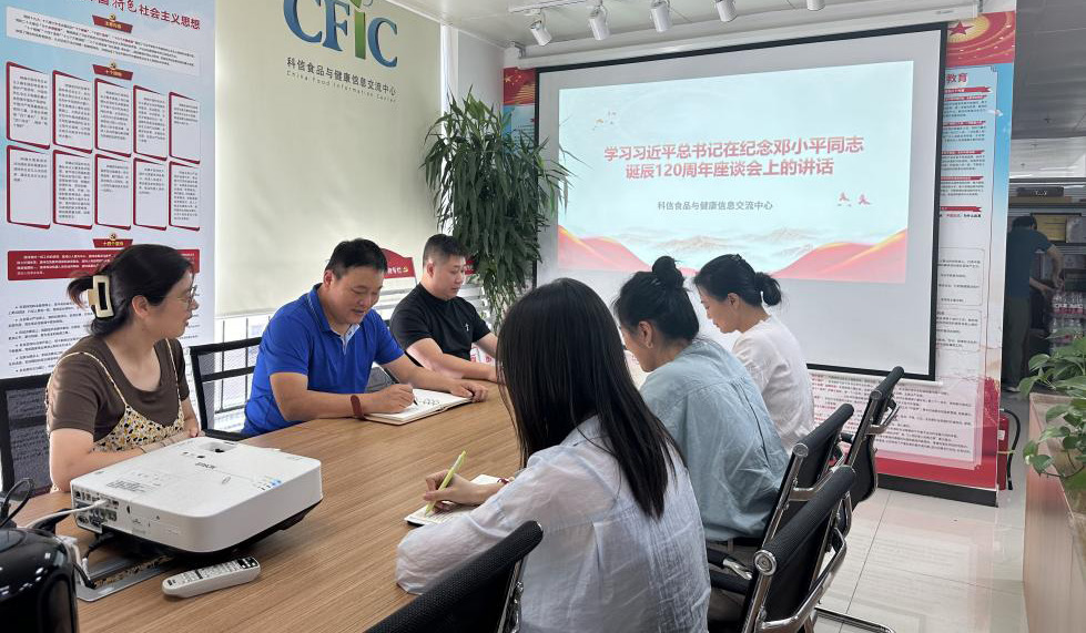 2024 年 8 月 27 日,科信食品與健康信息交流中心黨支部組織全體黨員召開了一次意義深遠的黨員大會。本次大會的主題是“學習習近平總書記在紀念鄧小平同志誕辰 120 周年座談會上的講話”。會議由黨支部書記包大躍主持。