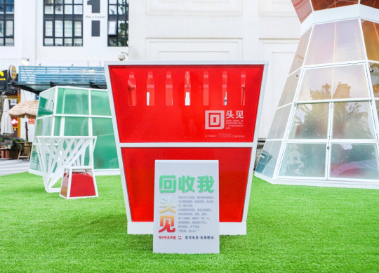 4 月 22 日世界地球日當天,由十萬多個飲料瓶回收再生而成的回收我,回頭見——社區循環美學驛站主題展亮相上海市長壽路街...