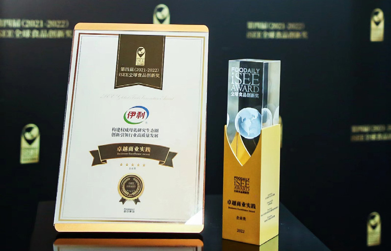 7 月 26 日,“第四屆 iSEE 全球食品創新獎頒獎典禮”在杭州舉行,伊利集團受邀參會。憑借持續突出的創新能力,伊利在眾多食品企業中脫穎而出,因“構建權威母乳研究生態圈,創新引領行業高質量發展”榮獲“卓越商業實踐獎”,旗下金典娟姍純牛奶、暢輕蛋白時光酸奶分別榮膺“綜合創新獎銀獎”和“最佳酸奶及酸奶飲品”。