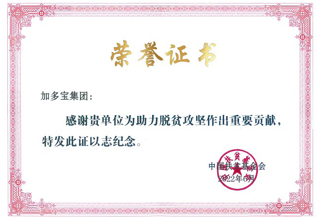 7月11日,加多寶集團獲得中國鄉(xiāng)村發(fā)展基金會(原中國扶貧基金會)助力脫貧攻堅卓越貢獻獎和榮譽證書。基金會對加多寶集團過去二十余年為助力脫貧攻堅事業(yè)作出的貢獻表示感謝,并期待與加多寶在推進鄉(xiāng)村振興、促進共同富裕的新征程上,攜手前行,共創(chuàng)美好未來!2021年,我國脫貧攻堅戰(zhàn)取得全面勝利,開啟了“鞏固拓展脫貧攻堅成果同鄉(xiāng)村振興有效銜接”的新征程。經(jīng)農(nóng)業(yè)農(nóng)村部、國家鄉(xiāng)村振興局、民政部批準,中國扶貧基金會于 2022 年 6 月更名為“中國鄉(xiāng)村發(fā)展基金會”,肩負新使命,開啟新篇章。早在 2008 年,加多寶就與中國扶貧基金會結下公益之緣,在公益助學、災害救援、精準扶貧等各領域深度合作,共創(chuàng)公益新模式,歷年來加多寶累計通過基金會向社會捐贈資金超 2.7 億元。從馳援地震災區(qū)到開創(chuàng)“建設型扶貧”模式;從幫助貧困高考生圓夢大學,到“發(fā)展型助學”“教育精準扶貧”的持續(xù)探索;從企業(yè)一己之善到“以善促善、人人公益”的理念升華;雙方攜手并進,開拓創(chuàng)新,為脫貧攻堅事業(yè)持續(xù)貢獻力量。