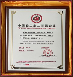 金沙河集團(tuán)榮獲“2022 年度中國(guó)輕工業(yè) 200 強(qiáng)企業(yè)”稱號(hào)