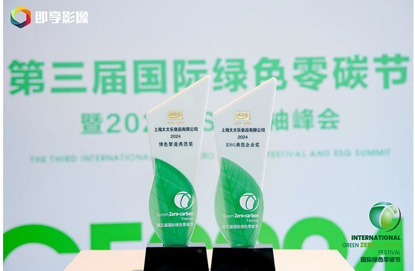 2024 年 7 月 24 日,第三屆國(guó)際綠色零碳節(jié)暨 ESG 領(lǐng)袖峰會(huì)在北京盛大召開,上海太太樂(lè)食品有限公司一舉奪得“2024ESG 典范企業(yè)獎(jiǎng)”與“2024 綠色智造典范獎(jiǎng)”兩項(xiàng)殊榮。