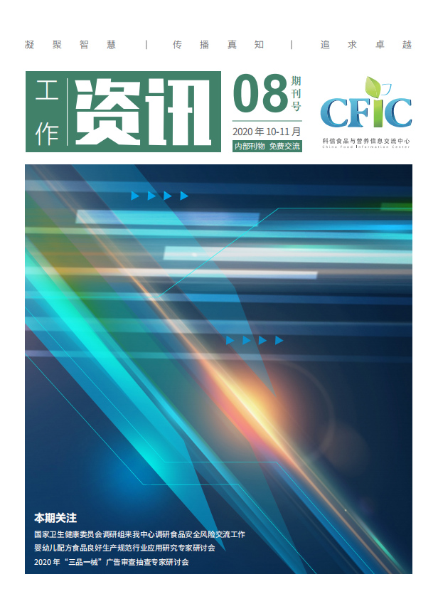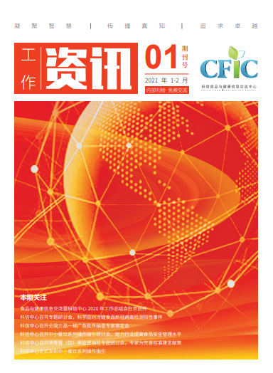 本期關(guān)注:食品與健康信息交流暨科信中心 2020 年工作總結(jié)會(huì)在京召開,科信中心召開專題研討會(huì),科學(xué)應(yīng)對(duì)冷鏈?zhǔn)称沸鹿诓《緳z測(cè)陽性事件,科信中心召開全國(guó)三品一械廣告批件抽查專家審定...